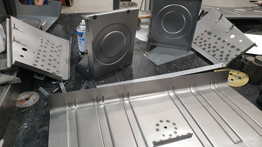 Fabricating a brand new panel starts with either, a drawing if it is quite basic and a series of straight folds, or for more elaborate patterns, profiles in either cartridge paper or steel to mimic the shape and contours to replicate what is required.